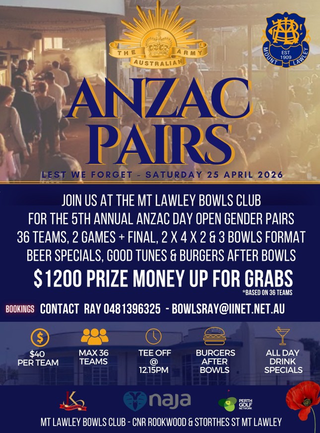 | 25th April | Mt Lawley | Fours | Open | FLYER