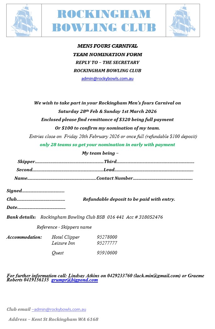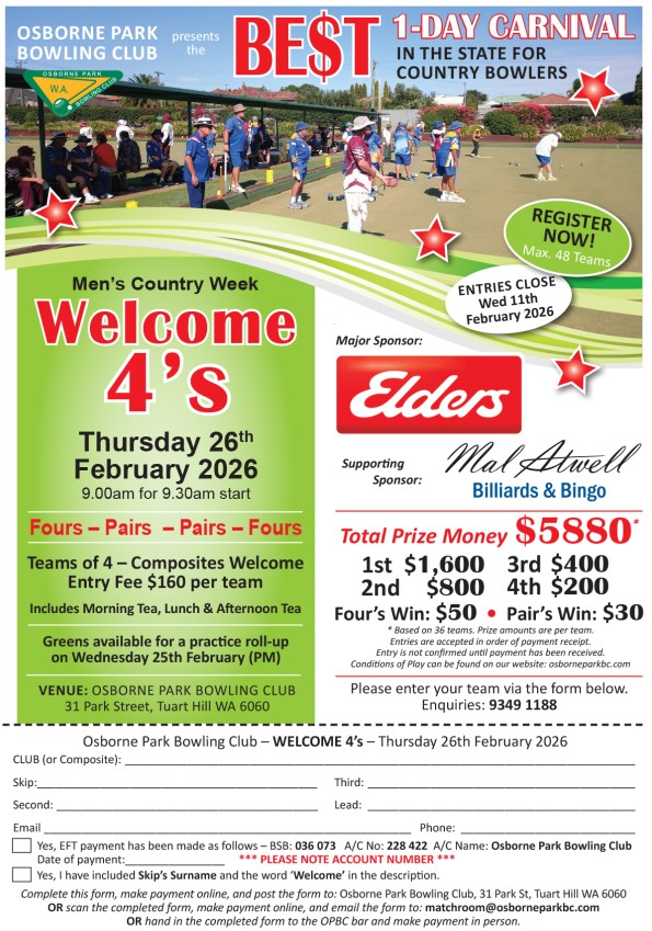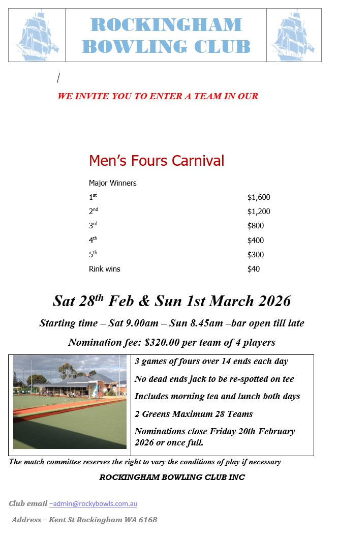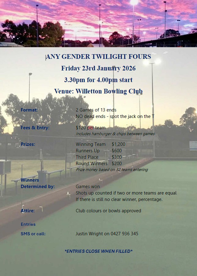 | 23rd January | Willetton | Fours | Open | FLYER