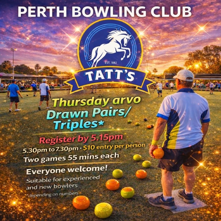 | Perth | 3 bowl pairs/Triples | $10 | 5.15pm for 5.30pm | FLYER | |
