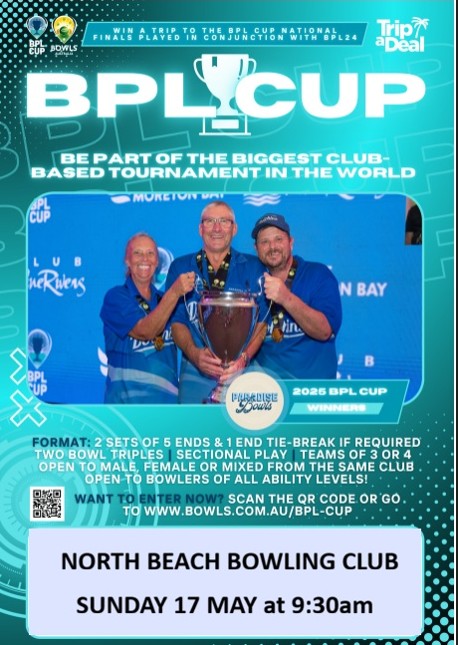 North Beach Bowling Club — Sunday 17 May — 9.30am — FLYER