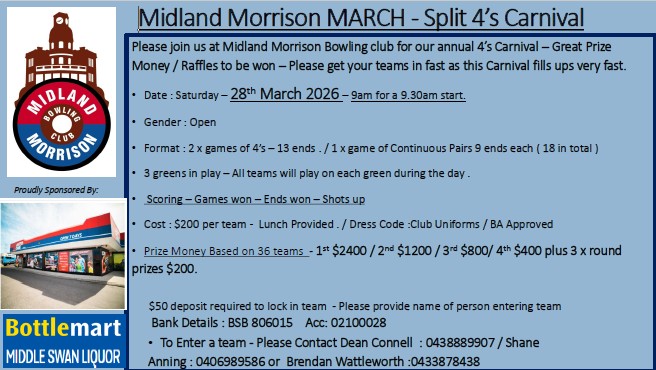| 2nd/3rd January | Osborne Park | Triples | Mens 2nd Div and under | FLYER